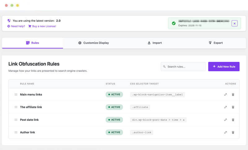 Add as many rules you need, for specific pages, urls, user agent, query string or even by cloacking ! In 10min your website will be boosted by the obfuscated links !