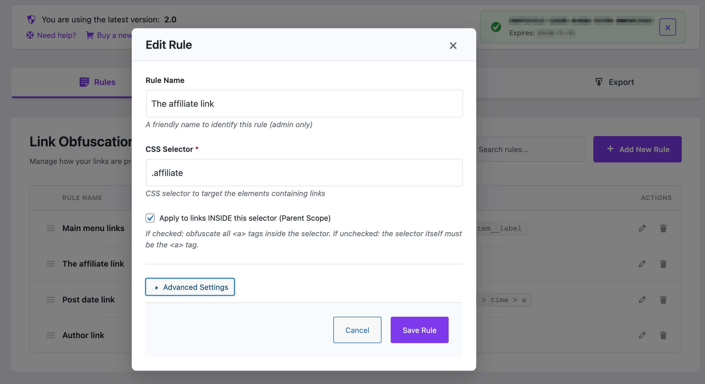 With our CSS Editor this allow to customize the CSS style of each third party theme for obfuscated links.